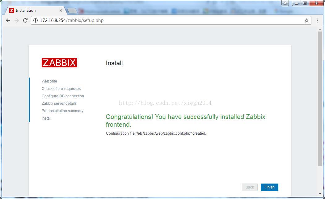 7、完成安装,会将在/etc/zabbix/web/zabbix.conf.php生成配置文件