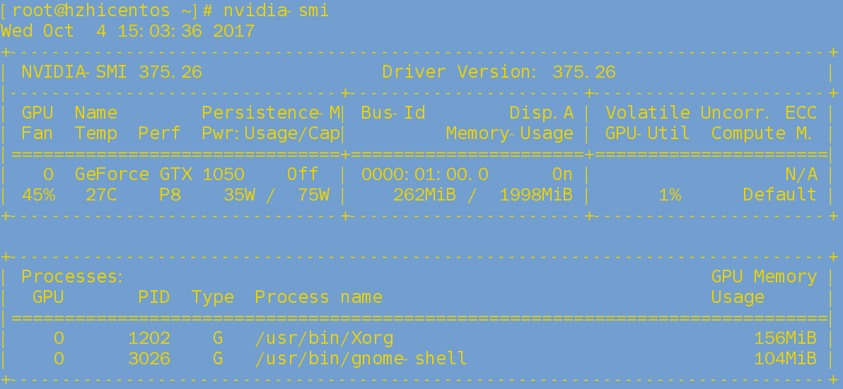 如果列出了gpu状态信息,表明安装成功: