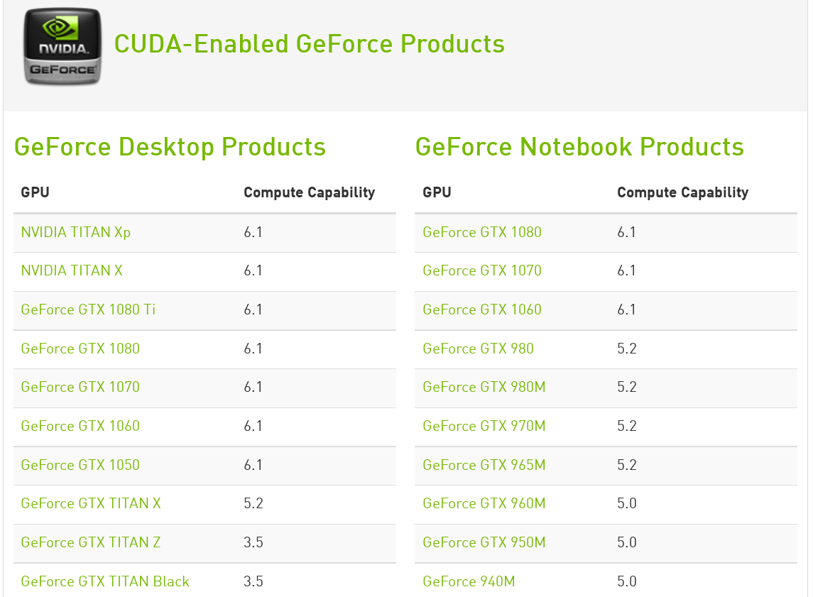到https://developer.nvidia.com/cuda-gpus查询gpu支持的cuda版本: