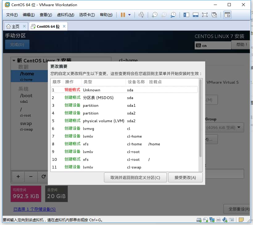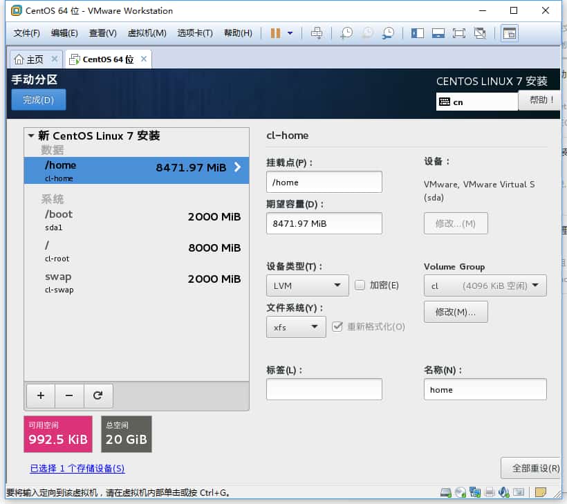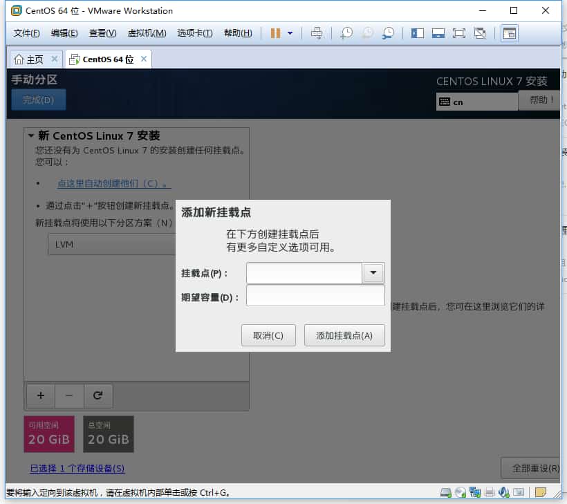 18.创建以下几个分区,不填写容量则意味着把所有剩下的容量分配给该盘