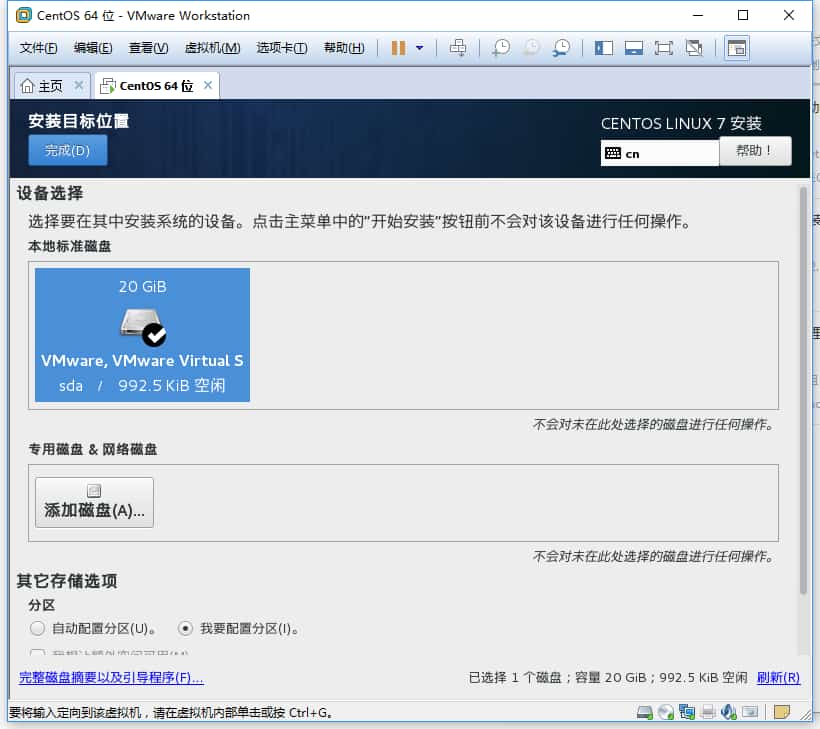15.双击本地标准磁盘,这时图标上出现打钩小图标,然后在其他存储选项选择我要配置分区,然后点击完成