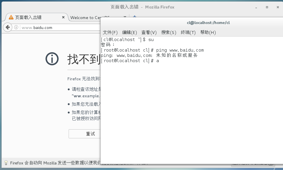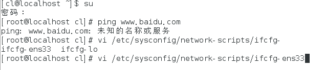 安装完成之后,在ping百度的时候,发现无法连接,可能是我当时安装的时候忘记配置网络了。没关系,接下来用命令行的方式来开启网卡配置。