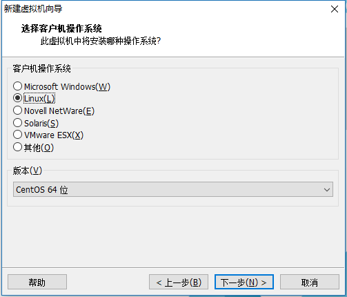 下一步,下一步选择稍后安装操作系统。下一步,然后选择对应版本的linux,这里我是用的64位。