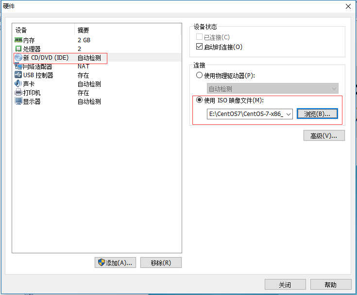 然后下一步到准备好虚拟机时,点击自定义硬件,更改系统iso的路径。点击关闭,完成,开启虚拟机。