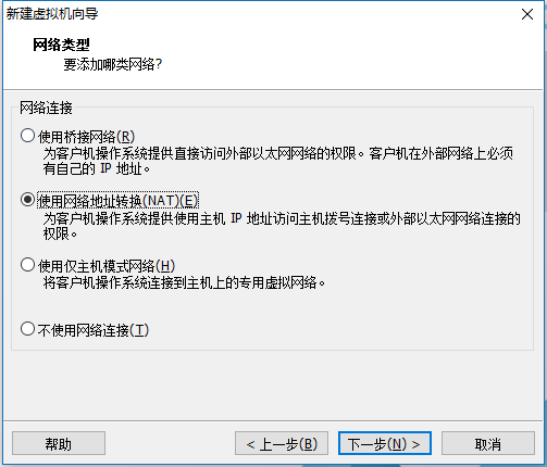 然后下一步,选择网络连接方式。桥接与nat均可。