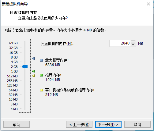 下一步,然后是分配内存,这里内存需要是4mb的倍数。这里我的内存是8g于是分配了2g给虚拟机,大家自己酌情分配,命令行给1g即可。