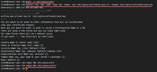 openssl req -new -x509 -days 365 -nodes -out /etc/nginx/cert/nextcloud.crt -keyout /etc/nginx/cert/nextcloud.key