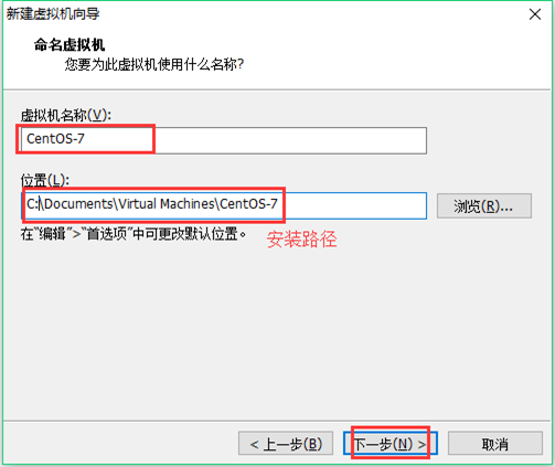 6、设置虚拟机名称和安装路径