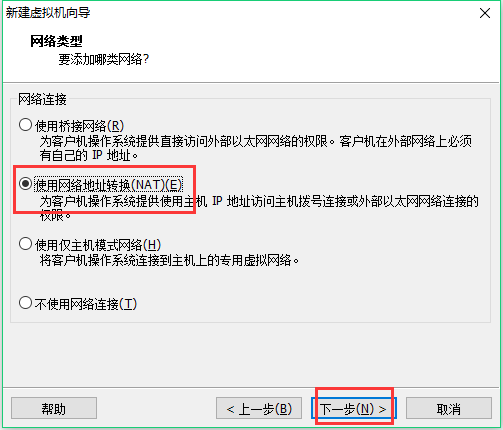 9、此处选择使用网络地址转换(NAT模式)