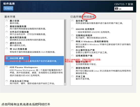 19、选择GNOME桌面,附加选项这边勾选自己需要的即可