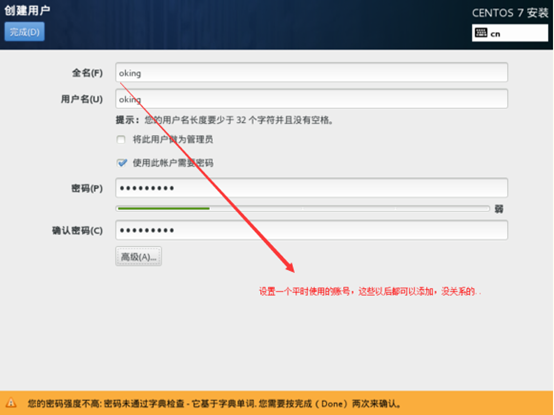 26、在安装的过程中,我们可以设置一下root密码,还可以创建一个用户常用账号