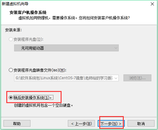 4、选择稍后安装操作系统(S),下一步