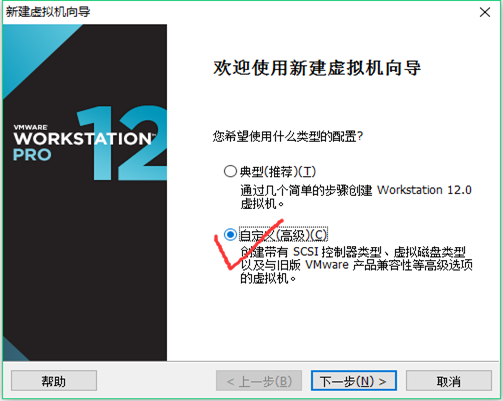 2、选择自定义(高级)后按下一步