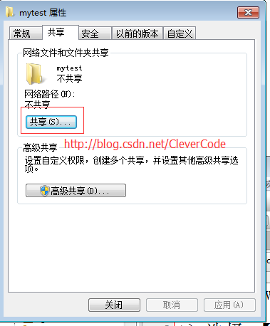 4)新建共享目录。在F盘新建mytest目录(F:\mytest)。选中mytest。点击右键。选择属性。点击共享。