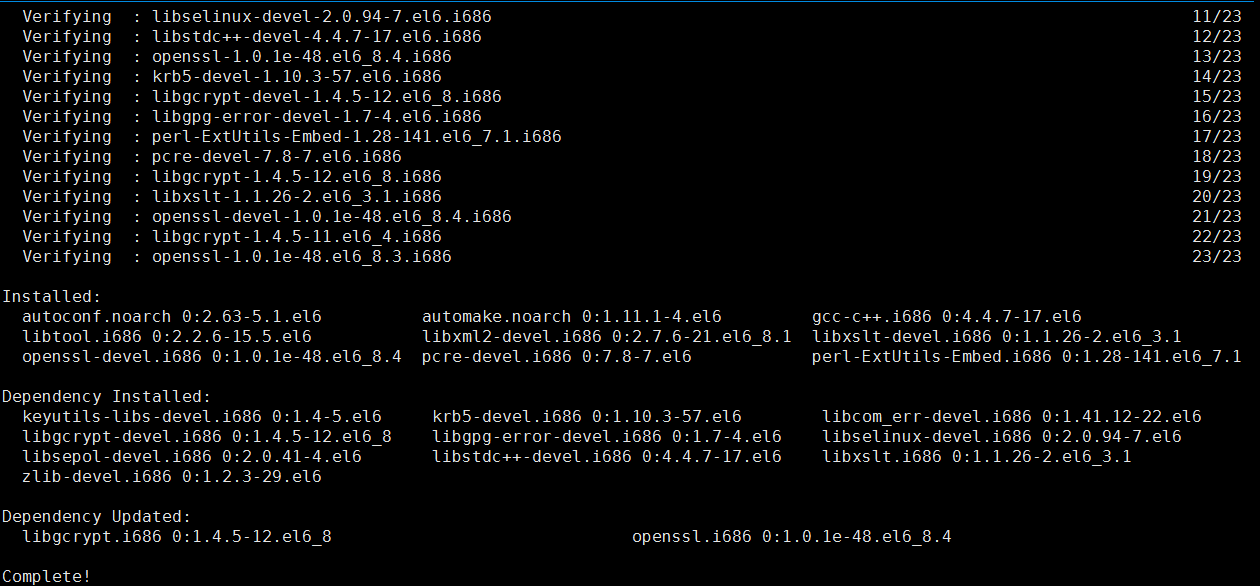 # yum -y install gcc wget gcc-c++ automake autoconf libtool libxml2-devel libxslt-devel perl-devel perl-ExtUtils-Embed pcre-devel openssl-devel