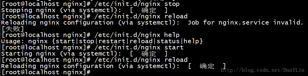 usage : nginx {start|stop|restart|reload|status|help}