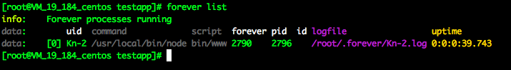 但是当我们关闭终端之后,进程就将结束,现在刚安装的forever就派上用场了,forever可以让进程在终端关闭之后继续运行: