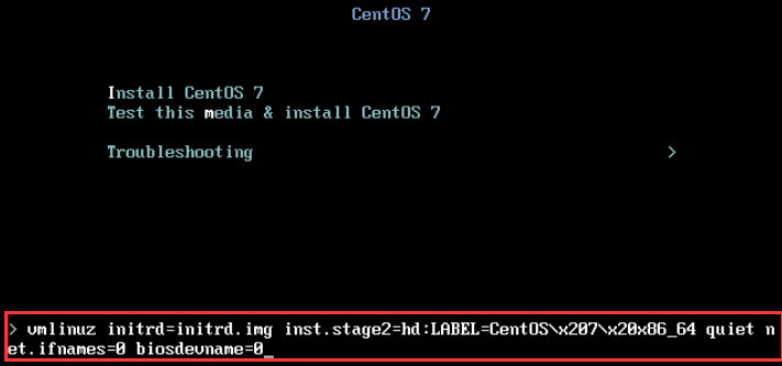 注意:CentOS7.x 的默认网卡文件为ifcfg-eno16777736,用户可以选择在安装系统前添加如下信息: