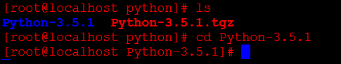 加压缩之后该目录下出现Python-3.5.1文件夹,进入到文件夹下执行编译安装。