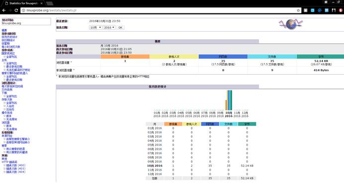 [root@linuxprobe ~]# /usr/share/awstats/linuxproberoot/cgi-bin/awstats.pl -config=linuxprobe.org -update