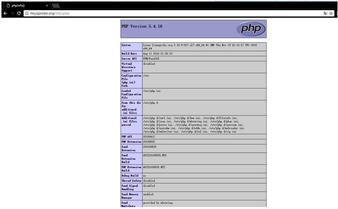 [root@linuxprobe ~]# echo '<?php phpinfo(); ?>' > /var/www/html/info.php