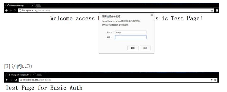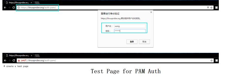 [3] 在客户端上使用web浏览器访问测试页面https://linuxprobe.org/auth-pam/,并与操作系统上的用户进行身份验证。