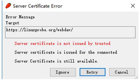 [8] waring显示如下,它的ssl证书没有安装在您的电脑上,它没有ploblem,点击“忽略”,然后去下一步。
