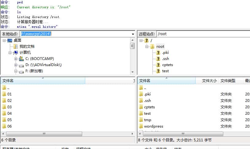 右边就是linux目录了,左边的是你的电脑,右击某个目录或者文件就可以上传了。在右边选择目录或者文件也可以下载到本地,跟ftp有点像。