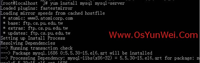 yum install mysql mysql-server #输入y即可自动安装,直到安装完成