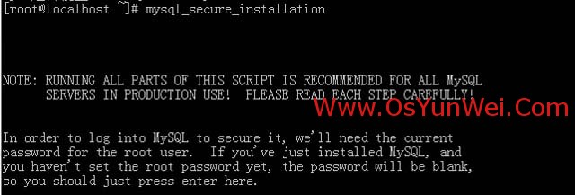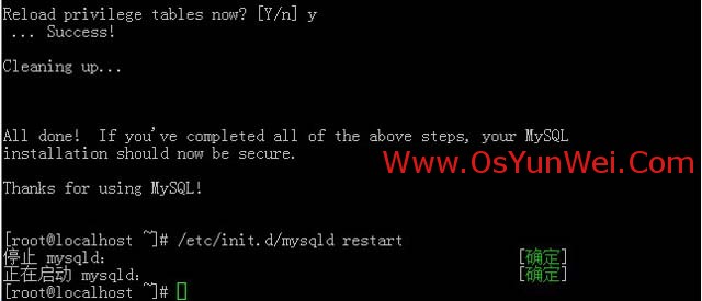 #回车,根据提示输入y,输入2次密码,回车,根据提示一路输入y,最后出现:thanks for using mysql!