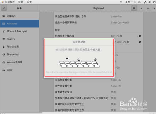 选择Keyboard,单击右边任意一项,并在键盘上按下要设置的快捷键,即可更改其快捷键,(注意有些是无法更改的!)
