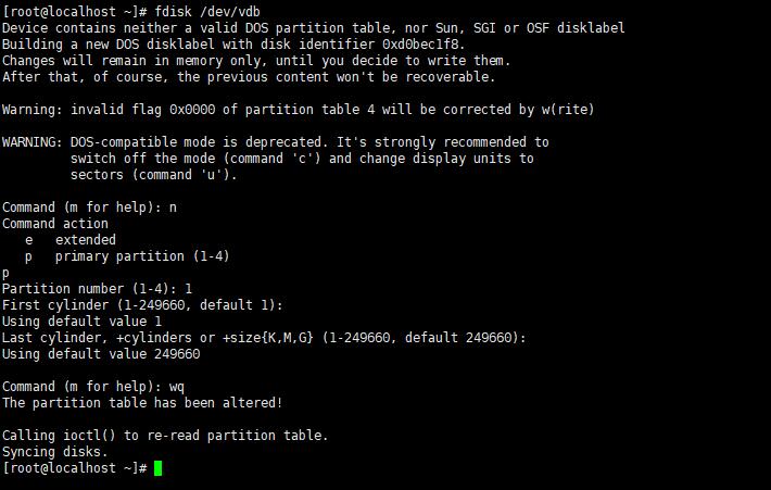 fdisk /dev/vdb
