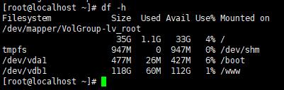 我们可以看到目录已经创建挂载完毕,在www目录有112G,然后用reboot重起一下系统 ,再看看是不是显示正常。