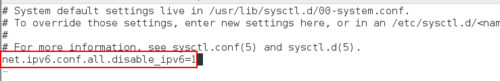 编辑/etc/sysctl.conf配置,增加net.ipv6.conf.all.disable_ipv6=1,如下图所示: