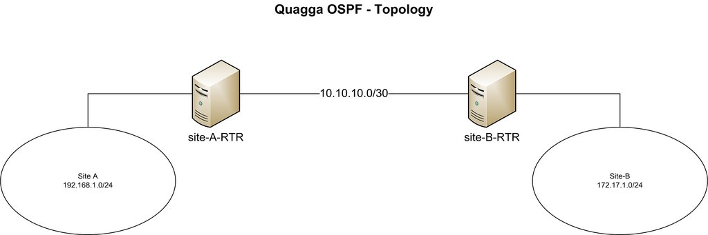 我们的CentOS设备位于这条专用链路的两端。这两个设备的主机名称分别被设为“site-A-RTR”和“site-B-RTR”。下面提供了IP地址的信息信息。