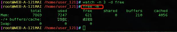 free –m 表示以M为单位查看内存使用情况,在这个输出中,我们重点关注的应该是free列与cached列的输出值。