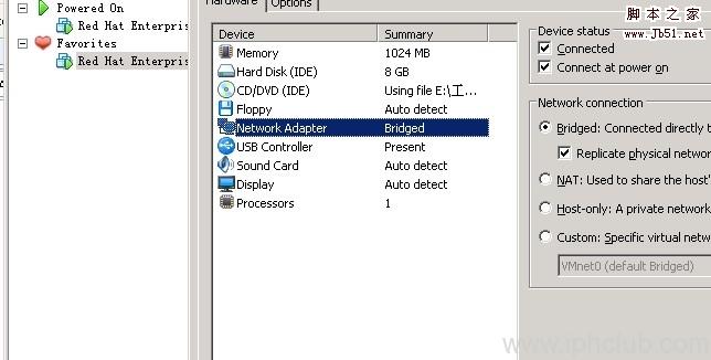 如果无法上网,鼠标右键选择虚拟机的setting配置项,Network Adapter选择Bridged,路由就会为其分配IP地址,其他上网方式可以自己去网上搜搜。