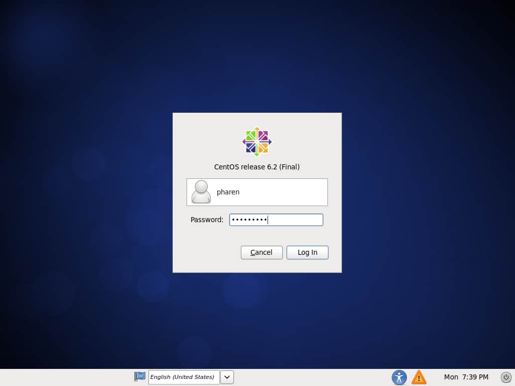 接着就到了登录页面,输入用户名、密码,进入CentOS桌面,安装完成。
