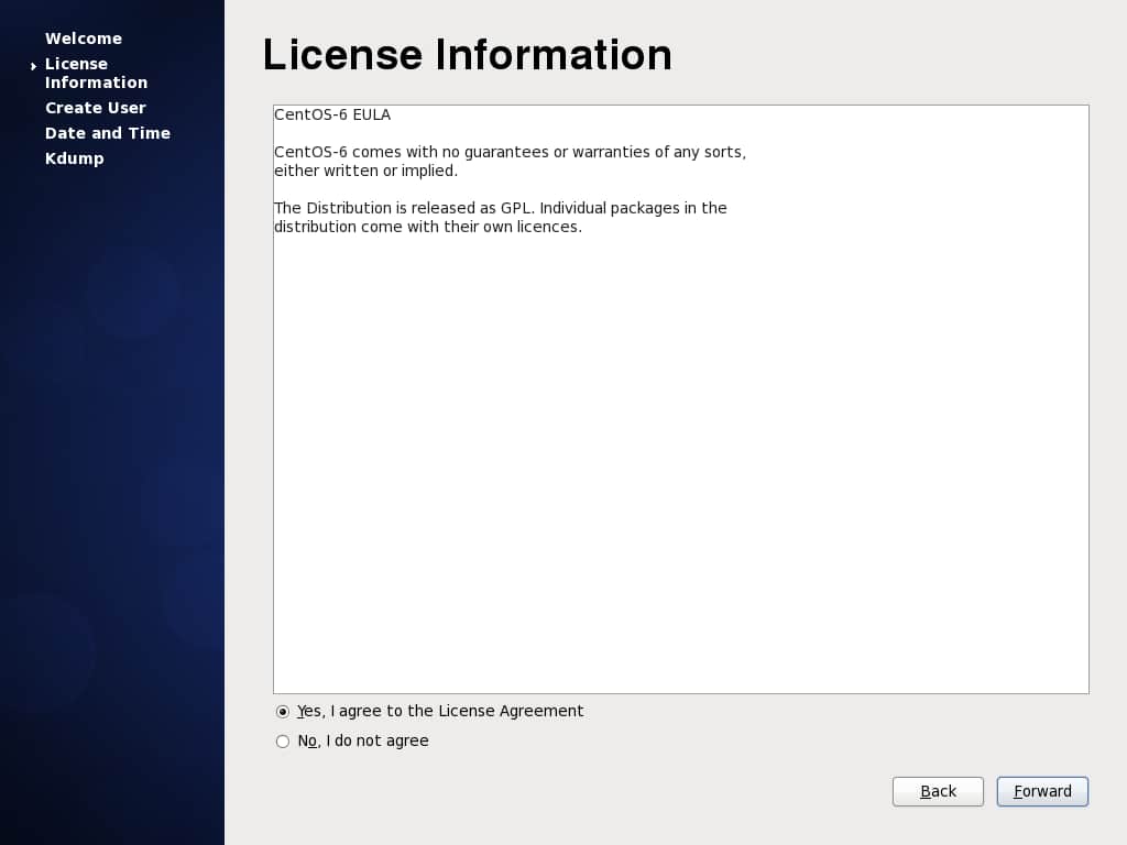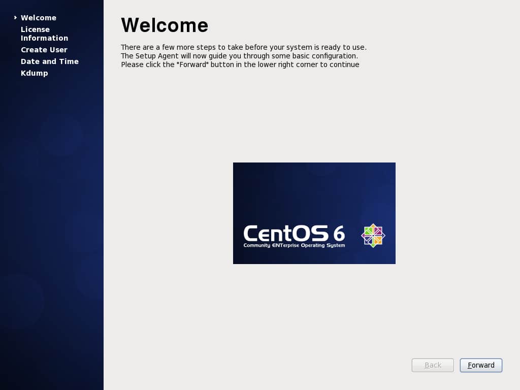第一次启动CentOS需要对CentOS进行一些常规设置直接点Forward就行了