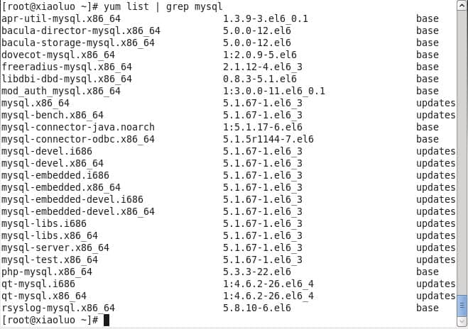 [root@xiaoluo ~]# rpm -qa | grep mysql // 这个命令就会查看该操作系统上是否已经安装了mysql数据库