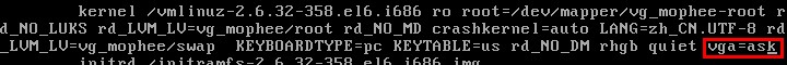 如上图,重启后会首先显示第一行,按ENTER键后显示系统支持的分辨率。这里输入 k ,即分辨率将调整为800×600×24,还有,请记住k后面的数字:315(如果不想每次都这么选择的话,进入系统后再将vga=ask,改成vga=315)