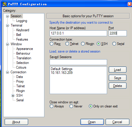 接下来通过putty客户端工具就能连接上虚拟机上的系统了,注意 Port设置为2200