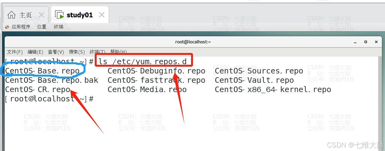 - /etc/yum.repos.d/CentOS-Base.repo 是yum的配置文件