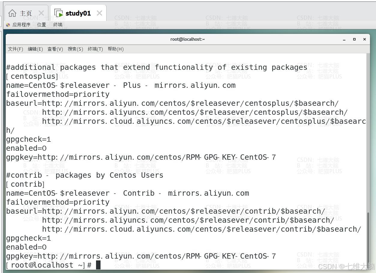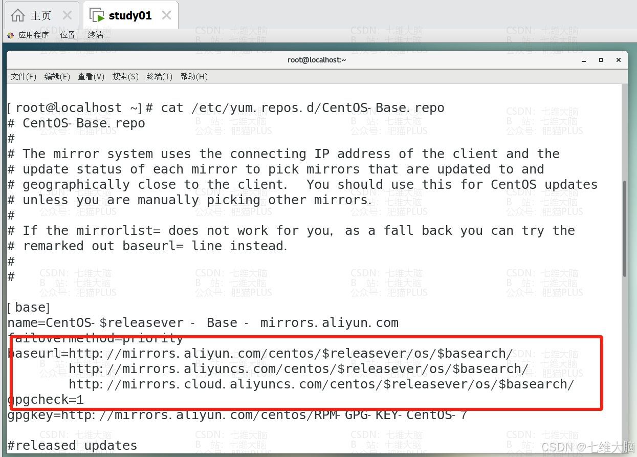 国内的yum源,推荐使用阿里云的。要用其他的也可以,把后面的链接换一下就行了。