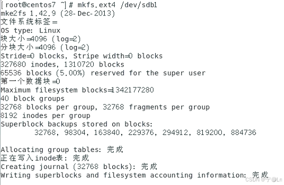 [root@localhost ~]#mkfs.ext4 /dev/sdb1