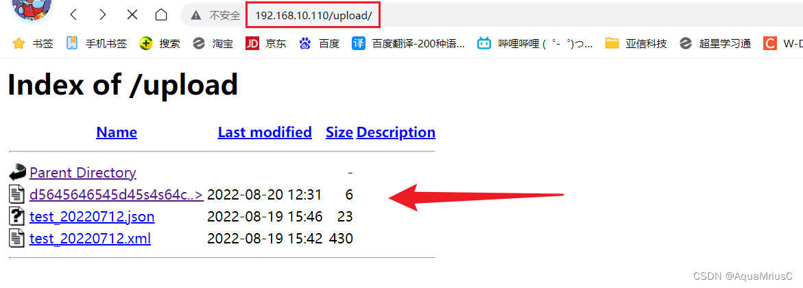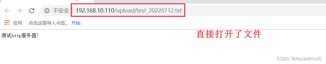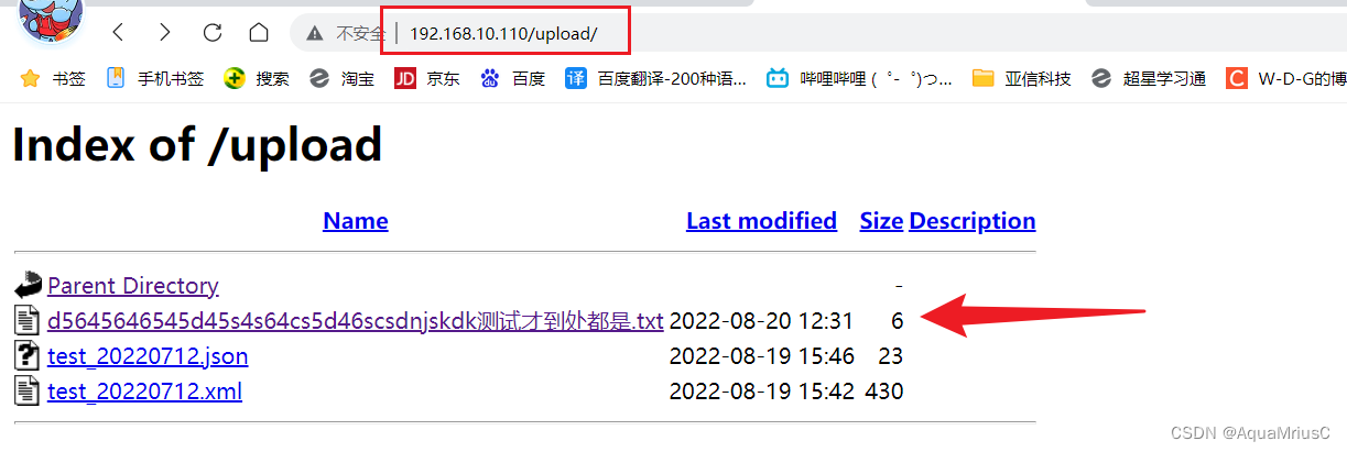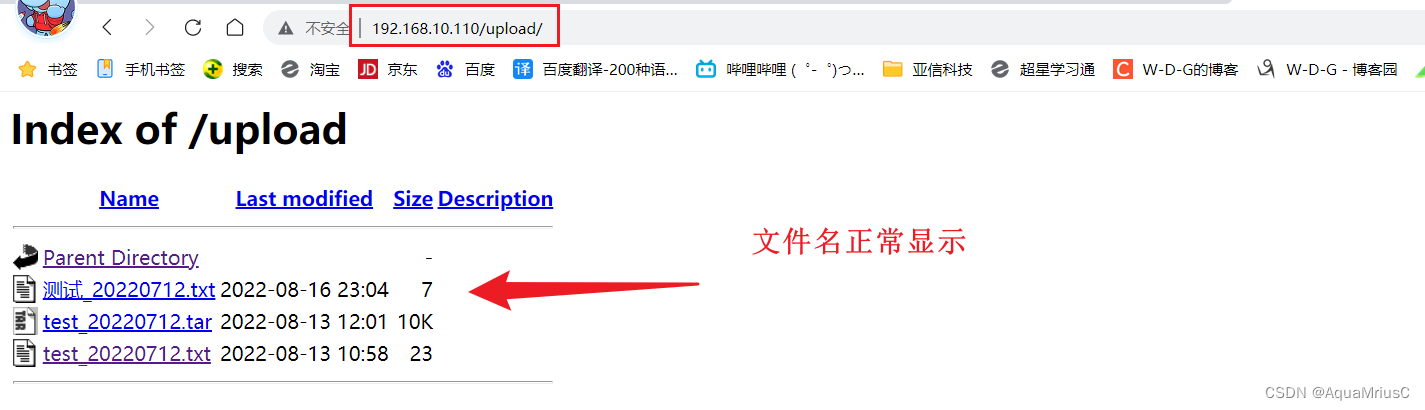 # 先新建一个存放文件的文件夹并授权 [root@centos7 ~]# mkdir -p /var/www/html/upload [root@centos7 ~]# chmod 755 /var/www/html/upload # 进入文件夹 [root@centos7 ~]# cd /var/www/html/upload # 新建测试文件,然后保存退出 [root@centos7 ~]# vim 测试_20220712.txt [root@centos7 upload]#