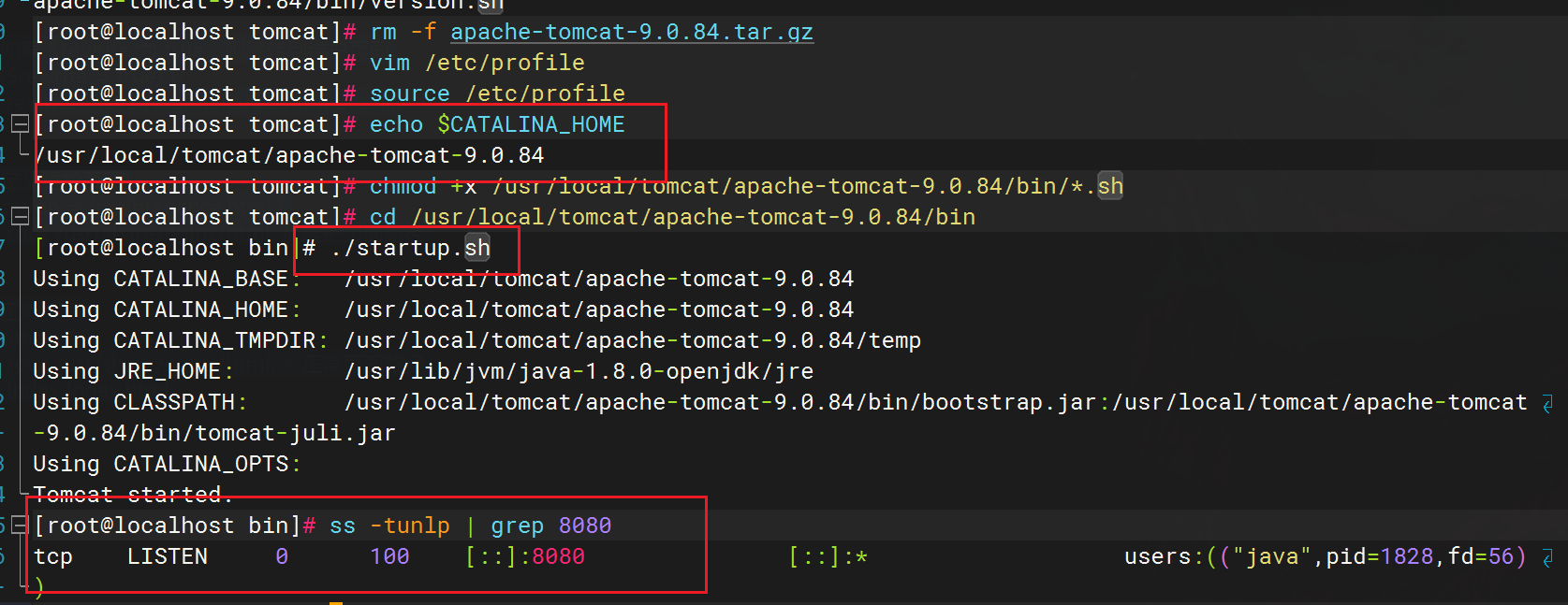 cd /usr/local/tomcat/apache-tomcat-9.0.84/bin ./startup.sh
