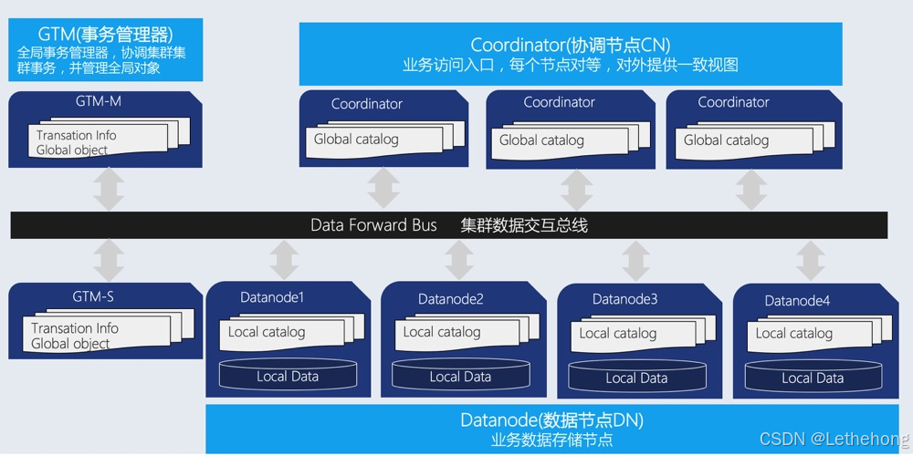 每个节点还存储业务数据的分片在功能上,DN节点负责完成执行协调节点分发的执行请求。