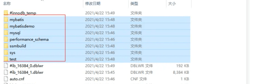 2、进入到mysql的data文件夹下:复制数据库的文件和ibdata1和mysql.ibd三种文件,表和表结构必须一致