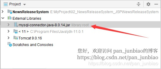 (4)最后点击“OK”即可,在项目的External Libraries下就能看的加载的JDBC驱动(如下图)。